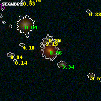 Object #7653 x,y = (1844, 4336) RA, Dec = (04:54:18.120, 02:56:12.12) = (73.57550, 2.93670) BPZ = 0.963 [0.918--1.007] type = 5.30 (ES0_B10 - Sbc_B10) chisq2 = 0.04 ODDS = 1.00 z_cluster = 0.203