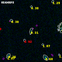 Object #7663 x,y = (5421, 4351) RA, Dec = (04:54:03.792, 02:56:13.20) = (73.51580, 2.93700) BPZ = 0.309 [0.149--3.260] type = 8.50 (SB2_B10 - SB1_B10) chisq2 = 0.01 ODDS = 0.20 z_cluster = 0.203