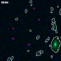 Object #7697 x,y = (5891, 4347) RA, Dec = (04:54:01.896, 02:56:12.84) = (73.50790, 2.93690) BPZ = 0.268 [0.129--4.249] type = 4.00 (Ell4_A_0) chisq2 = 0.30 ODDS = 0.09 z_cluster = 0.203