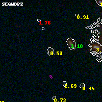 Object #7730 x,y = (1199, 4337) RA, Dec = (04:54:20.688, 02:56:12.12) = (73.58620, 2.93670) BPZ = 0.530 [0.418--4.285] type = 9.00 (SB2_B10) chisq2 = 0.72 ODDS = 0.12 z_cluster = 0.203