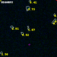 Object #7733 x,y = (4515, 4338) RA, Dec = (04:54:07.416, 02:56:12.48) = (73.53090, 2.93680) BPZ = 1.868 [0.196--3.195] type = 9.20 (SB2_B10 - SB3_B10) chisq2 = 0.08 ODDS = 0.10 z_cluster = 0.203