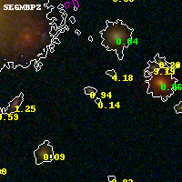 Object #7760 x,y = (1766, 4327) RA, Dec = (04:54:18.432, 02:56:11.76) = (73.57680, 2.93660) BPZ = 0.939 [0.715--1.047] type = 9.80 (SB3_B10 - SB2_B10) chisq2 = 0.31 ODDS = 0.81 z_cluster = 0.203