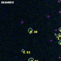 Object #781 x,y = (7593, 702) RA, Dec = (04:53:55.080, 02:52:34.32) = (73.47950, 2.87620) BPZ = 0.304 [0.046--3.473] type = 7.30 (Scd_B10 - SB1_B10) chisq2 = 0.07 ODDS = 0.21 z_cluster = 0.203