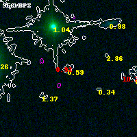 Object #7824 x,y = (3063, 4296) RA, Dec = (04:54:13.224, 02:56:09.96) = (73.55510, 2.93610) BPZ = 0.586 [0.101--3.222] type = 7.60 (SB1_B10 - Scd_B10) chisq2 = 0.00 ODDS = 0.14 z_cluster = 0.203