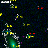 Object #7844 x,y = (5244, 4290) RA, Dec = (04:54:04.488, 02:56:09.60) = (73.51870, 2.93600) BPZ = 3.365 [0.296--3.547] type = 11.00 (SB11_A_0_l) chisq2 = 0.19 ODDS = 0.50 z_cluster = 0.203