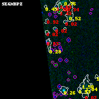 Object #7895 x,y = (513, 4261) RA, Dec = (04:54:23.448, 02:56:07.80) = (73.59770, 2.93550) BPZ = 0.278 [0.114--3.102] type = 9.90 (SB3_B10 - SB2_B10) chisq2 = 0.01 ODDS = 0.06 z_cluster = 0.203