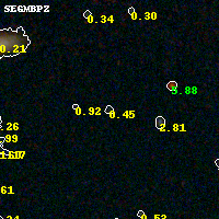 Object #7935 x,y = (974, 5799) RA, Dec = (04:54:21.600, 02:57:39.96) = (73.59000, 2.96110) BPZ = 0.447 [0.139--4.088] type = 10.00 (SB3_B10) chisq2 = 0.40 ODDS = 0.43 z_cluster = 0.203