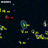 Object #8003 x,y = (6684, 4228) RA, Dec = (04:53:58.728, 02:56:05.64) = (73.49470, 2.93490) BPZ = 0.826 [0.720--1.569] type = 9.50 (SB3_B10 - SB2_B10) chisq2 = 0.02 ODDS = 0.23 z_cluster = 0.203