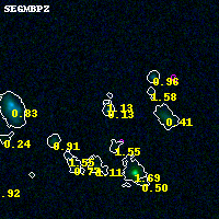 Object #8018 x,y = (6772, 4227) RA, Dec = (04:53:58.368, 02:56:05.64) = (73.49320, 2.93490) BPZ = 0.128 [0.083--2.640] type = 9.40 (SB2_B10 - SB3_B10) chisq2 = 0.00 ODDS = 0.09 z_cluster = 0.203