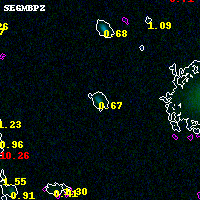 Object #8097 x,y = (5463, 4194) RA, Dec = (04:54:03.624, 02:56:03.84) = (73.51510, 2.93440) BPZ = 0.670 [0.563--2.096] type = 9.20 (SB2_B10 - SB3_B10) chisq2 = 0.01 ODDS = 0.29 z_cluster = 0.203