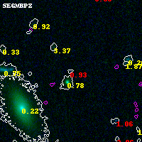 Object #8106 x,y = (5267, 4256) RA, Dec = (04:54:04.392, 02:56:07.44) = (73.51830, 2.93540) BPZ = 0.928 [0.226--2.776] type = 10.40 (SB3_B10 - SB11_A_0_l) chisq2 = 1.56 ODDS = 0.11 z_cluster = 0.203