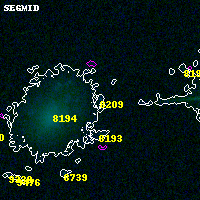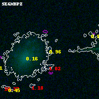Object #8209 x,y = (3226, 4128) RA, Dec = (04:54:12.576, 02:55:59.88) = (73.55240, 2.93330) BPZ = 0.962 [0.524--2.350] type = 10.90 (SB11_A_0_l - SB3_B10) chisq2 = 0.20 ODDS = 0.24 z_cluster = 0.203