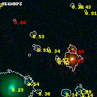 Object #8228 x,y = (1021, 4149) RA, Dec = (04:54:21.408, 02:56:00.96) = (73.58920, 2.93360) BPZ = 0.338 [0.122--4.035] type = 9.50 (SB3_B10 - SB2_B10) chisq2 = 0.41 ODDS = 0.11 z_cluster = 0.203
