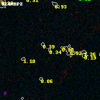 Object #8246 x,y = (2531, 4142) RA, Dec = (04:54:15.360, 02:56:00.60) = (73.56400, 2.93350) BPZ = 0.337 [0.121--3.766] type = 10.00 (SB3_B10) chisq2 = 0.29 ODDS = 0.18 z_cluster = 0.203