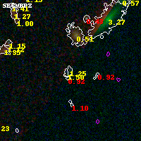 Object #825 x,y = (5944, 724) RA, Dec = (04:54:01.680, 02:52:35.40) = (73.50700, 2.87650) BPZ = 1.253 [0.350--2.444] type = 8.20 (SB1_B10 - SB2_B10) chisq2 = 0.00 ODDS = 0.13 z_cluster = 0.203