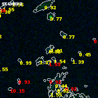 Object #8268 x,y = (6377, 4128) RA, Dec = (04:53:59.952, 02:55:59.88) = (73.49980, 2.93330) BPZ = 0.916 [0.765--1.662] type = 8.80 (SB2_B10 - SB1_B10) chisq2 = 0.39 ODDS = 0.38 z_cluster = 0.203