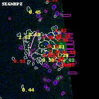 Object #8306 x,y = (7418, 4077) RA, Dec = (04:53:55.776, 02:55:56.64) = (73.48240, 2.93240) BPZ = 3.447 [3.244--3.595] type = 11.00 (SB11_A_0_l) chisq2 = 43.33 ODDS = 0.95 z_cluster = 0.203