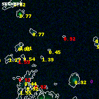 Object #8332 x,y = (6439, 4122) RA, Dec = (04:53:59.712, 02:55:59.52) = (73.49880, 2.93320) BPZ = 0.450 [0.183--4.102] type = 8.20 (SB1_B10 - SB2_B10) chisq2 = 0.24 ODDS = 0.05 z_cluster = 0.203