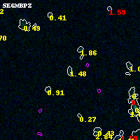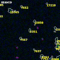 Object #8351 x,y = (5877, 4412) RA, Dec = (04:54:01.968, 02:56:16.80) = (73.50820, 2.93800) BPZ = 1.482 [0.133--2.576] type = 8.80 (SB2_B10 - SB1_B10) chisq2 = 0.00 ODDS = 0.12 z_cluster = 0.203