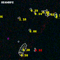 Object #8409 x,y = (2514, 4084) RA, Dec = (04:54:15.432, 02:55:57.00) = (73.56430, 2.93250) BPZ = 0.056 [0.024--3.193] type = 10.20 (SB3_B10 - SB11_A_0_l) chisq2 = 0.27 ODDS = 0.24 z_cluster = 0.203