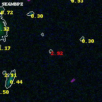 Object #841 x,y = (6923, 736) RA, Dec = (04:53:57.768, 02:52:36.12) = (73.49070, 2.87670) BPZ = 2.917 [0.241--3.469] type = 10.50 (SB11_A_0_l - SB3_B10) chisq2 = 1.48 ODDS = 0.21 z_cluster = 0.203