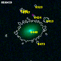 Object #8440 x,y = (4888, 4040) RA, Dec = (04:54:05.928, 02:55:54.48) = (73.52470, 2.93180) BPZ = 0.215 [0.166--0.267] type = 2.60 (Ell5_A_0 - Ell6_A_0) chisq2 = 0.00 ODDS = 0.95 z_cluster = 0.203