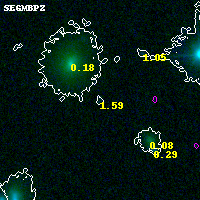 Object #849 x,y = (4461, 743) RA, Dec = (04:54:07.632, 02:52:36.84) = (73.53180, 2.87690) BPZ = 1.595 [0.710--2.882] type = 10.30 (SB3_B10 - SB11_A_0_l) chisq2 = 0.24 ODDS = 0.14 z_cluster = 0.203