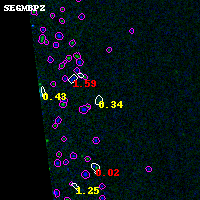 Object #8553 x,y = (601, 3980) RA, Dec = (04:54:23.088, 02:55:50.88) = (73.59620, 2.93080) BPZ = 0.344 [0.146--3.335] type = 10.10 (SB3_B10 - SB11_A_0_l) chisq2 = 0.01 ODDS = 0.07 z_cluster = 0.203