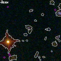 Object #8596 x,y = (2170, 3913) RA, Dec = (04:54:16.800, 02:55:46.92) = (73.57000, 2.92970) BPZ = 0.415 [0.130--3.535] type = 9.30 (SB2_B10 - SB3_B10) chisq2 = 0.39 ODDS = 0.22 z_cluster = 0.203