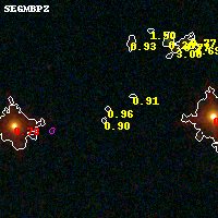 Object #8613 x,y = (1721, 3935) RA, Dec = (04:54:18.600, 02:55:48.36) = (73.57750, 2.93010) BPZ = 0.957 [0.471--2.595] type = 10.80 (SB11_A_0_l - SB3_B10) chisq2 = 0.37 ODDS = 0.27 z_cluster = 0.203