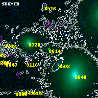 Object #8614 x,y = (5803, 3867) RA, Dec = (04:54:02.256, 02:55:44.04) = (73.50940, 2.92890) BPZ = 0.719 [0.595--1.826] type = 6.30 (Sbc_B10 - Scd_B10) chisq2 = 0.00 ODDS = 0.62 z_cluster = 0.203