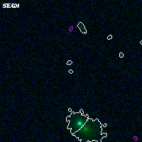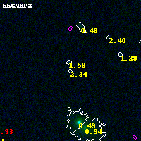 Object #8633 x,y = (6921, 3918) RA, Dec = (04:53:57.768, 02:55:47.28) = (73.49070, 2.92980) BPZ = 2.342 [0.184--3.336] type = 9.10 (SB2_B10 - SB3_B10) chisq2 = 0.00 ODDS = 0.11 z_cluster = 0.203