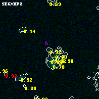 Object #8638 x,y = (3709, 3915) RA, Dec = (04:54:10.632, 02:55:46.92) = (73.54430, 2.92970) BPZ = 0.917 [0.728--1.782] type = 9.20 (SB2_B10 - SB3_B10) chisq2 = 0.79 ODDS = 0.31 z_cluster = 0.203