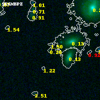 Object #8659 x,y = (860, 3985) RA, Dec = (04:54:22.056, 02:55:51.24) = (73.59190, 2.93090) BPZ = 0.199 [0.096--4.078] type = 6.70 (Scd_B10 - Sbc_B10) chisq2 = 0.52 ODDS = 0.08 z_cluster = 0.203