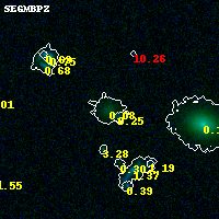 Object #8697 x,y = (4660, 3883) RA, Dec = (04:54:06.840, 02:55:45.12) = (73.52850, 2.92920) BPZ = 0.082 [0.039--3.355] type = 4.00 (Ell4_A_0) chisq2 = 0.01 ODDS = 0.47 z_cluster = 0.203