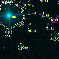 Object #8744 x,y = (3429, 4085) RA, Dec = (04:54:11.760, 02:55:57.36) = (73.54900, 2.93260) BPZ = 0.430 [0.123--3.297] type = 9.00 (SB2_B10) chisq2 = 0.00 ODDS = 0.07 z_cluster = 0.203