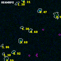 Object #8769 x,y = (3280, 3871) RA, Dec = (04:54:12.360, 02:55:44.40) = (73.55150, 2.92900) BPZ = 0.601 [0.110--3.129] type = 7.90 (SB1_B10 - Scd_B10) chisq2 = 0.00 ODDS = 0.13 z_cluster = 0.203