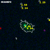 Object #8807 x,y = (6933, 3845) RA, Dec = (04:53:57.720, 02:55:42.96) = (73.49050, 2.92860) BPZ = 0.492 [0.414--0.566] type = 3.40 (Ell5_A_0 - Ell4_A_0) chisq2 = 0.02 ODDS = 0.86 z_cluster = 0.203