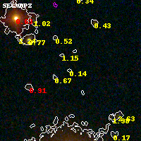 Object #8833 x,y = (1894, 3854) RA, Dec = (04:54:17.904, 02:55:43.32) = (73.57460, 2.92870) BPZ = 0.139 [0.091--1.030] type = 10.00 (SB3_B10) chisq2 = 0.87 ODDS = 0.28 z_cluster = 0.203