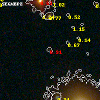Object #8885 x,y = (1837, 3830) RA, Dec = (04:54:18.144, 02:55:41.88) = (73.57560, 2.92830) BPZ = 0.905 [0.426--0.959] type = 9.90 (SB3_B10 - SB2_B10) chisq2 = 1.04 ODDS = 0.41 z_cluster = 0.203