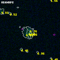 Object #8887 x,y = (6279, 3822) RA, Dec = (04:54:00.360, 02:55:41.52) = (73.50150, 2.92820) BPZ = 0.762 [0.676--2.209] type = 7.90 (SB1_B10 - Scd_B10) chisq2 = 0.00 ODDS = 0.29 z_cluster = 0.203