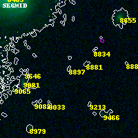 Object #8897 x,y = (6015, 3824) RA, Dec = (04:54:01.416, 02:55:41.52) = (73.50590, 2.92820) BPZ = 1.028 [0.704--2.434] type = 11.00 (SB11_A_0_l) chisq2 = 8.63 ODDS = 0.23 z_cluster = 0.203