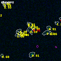 Object #8914 x,y = (6717, 3798) RA, Dec = (04:53:58.584, 02:55:40.08) = (73.49410, 2.92780) BPZ = 0.595 [0.175--2.433] type = 9.00 (SB2_B10) chisq2 = 0.02 ODDS = 0.15 z_cluster = 0.203