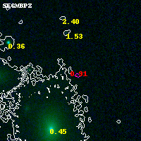 Object #8918 x,y = (4123, 3820) RA, Dec = (04:54:08.976, 02:55:41.16) = (73.53740, 2.92810) BPZ = 0.913 [0.319--4.341] type = 8.00 (SB1_B10) chisq2 = 1.03 ODDS = 0.13 z_cluster = 0.203