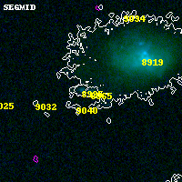 Object #8965 x,y = (2672, 3736) RA, Dec = (04:54:14.808, 02:55:36.12) = (73.56170, 2.92670) BPZ = 0.784 [0.542--1.841] type = 10.70 (SB11_A_0_l - SB3_B10) chisq2 = 0.01 ODDS = 0.26 z_cluster = 0.203