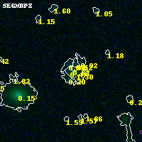 Object #9002 x,y = (3060, 3825) RA, Dec = (04:54:13.248, 02:55:41.52) = (73.55520, 2.92820) BPZ = 0.474 [0.071--2.743] type = 8.50 (SB2_B10 - SB1_B10) chisq2 = 0.00 ODDS = 0.31 z_cluster = 0.203