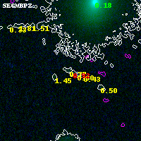 Object #9044 x,y = (5820, 3716) RA, Dec = (04:54:02.184, 02:55:35.04) = (73.50910, 2.92640) BPZ = 0.767 [0.443--2.564] type = 8.40 (SB1_B10 - SB2_B10) chisq2 = 0.02 ODDS = 0.13 z_cluster = 0.203