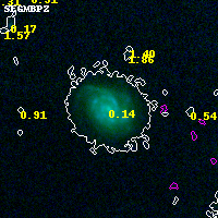 Object #9152 x,y = (7275, 3656) RA, Dec = (04:53:56.352, 02:55:31.44) = (73.48480, 2.92540) BPZ = 0.136 [0.053--0.391] type = 5.70 (Sbc_B10 - ES0_B10) chisq2 = 0.01 ODDS = 0.50 z_cluster = 0.203