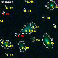 Object #9166 x,y = (3910, 3665) RA, Dec = (04:54:09.840, 02:55:32.16) = (73.54100, 2.92560) BPZ = 0.606 [0.525--2.399] type = 8.10 (SB1_B10 - SB2_B10) chisq2 = 0.00 ODDS = 0.78 z_cluster = 0.203