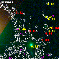 Object #9229 x,y = (2360, 3667) RA, Dec = (04:54:16.056, 02:55:32.16) = (73.56690, 2.92560) BPZ = 0.918 [0.264--3.384] type = 9.50 (SB3_B10 - SB2_B10) chisq2 = 2.35 ODDS = 0.13 z_cluster = 0.203